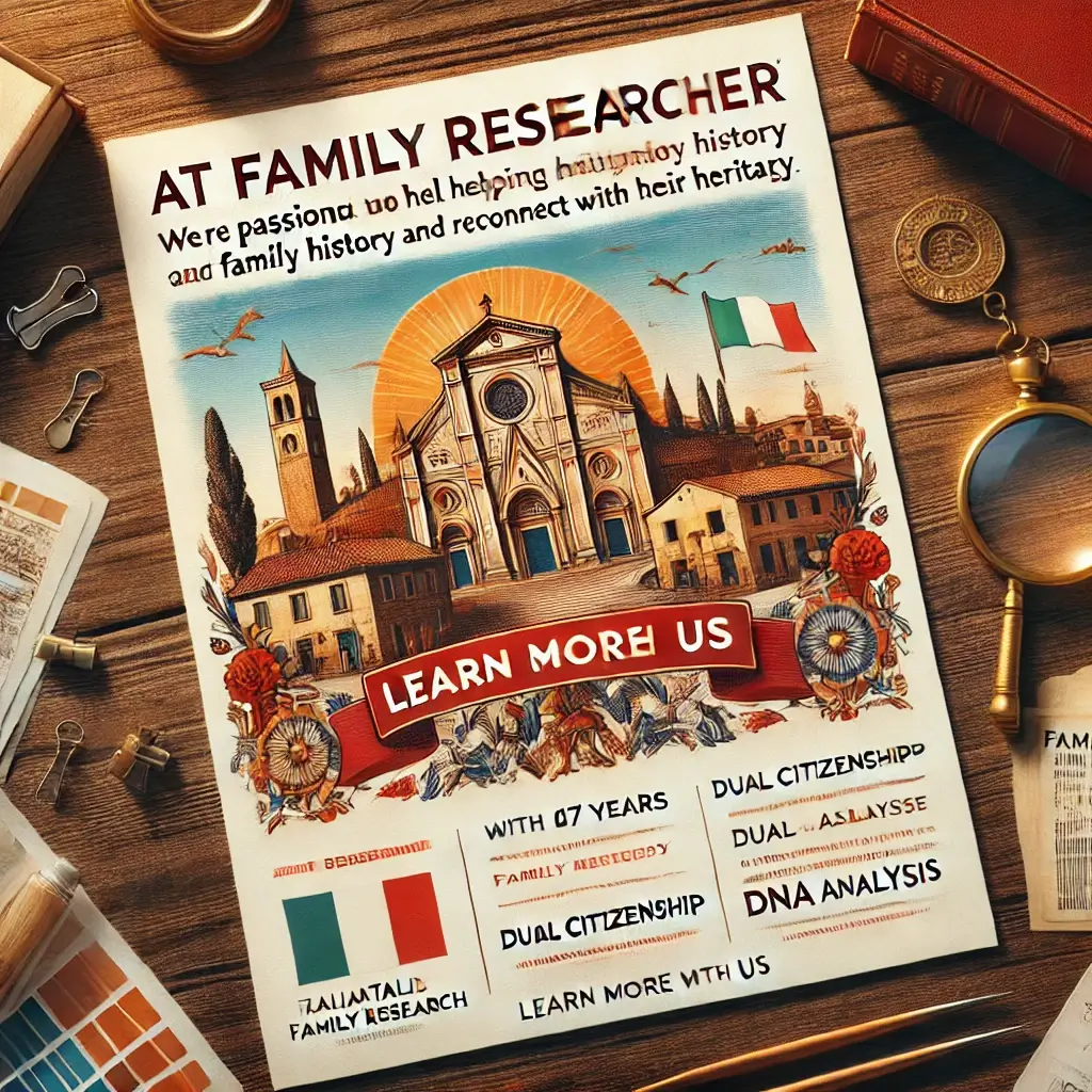 Discover your Italian roots with Family Researcher. 17+ years expertise in genealogy, dual citizenship, and ancestral research. Your trusted partner in family history.